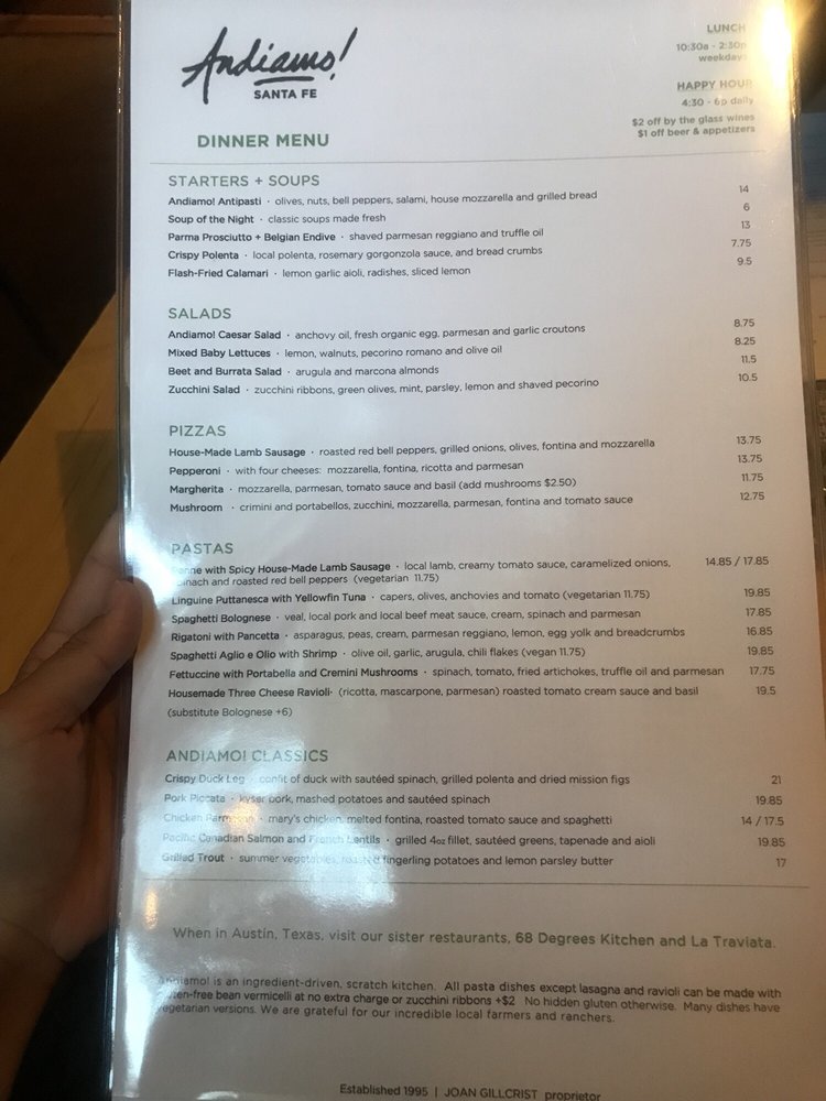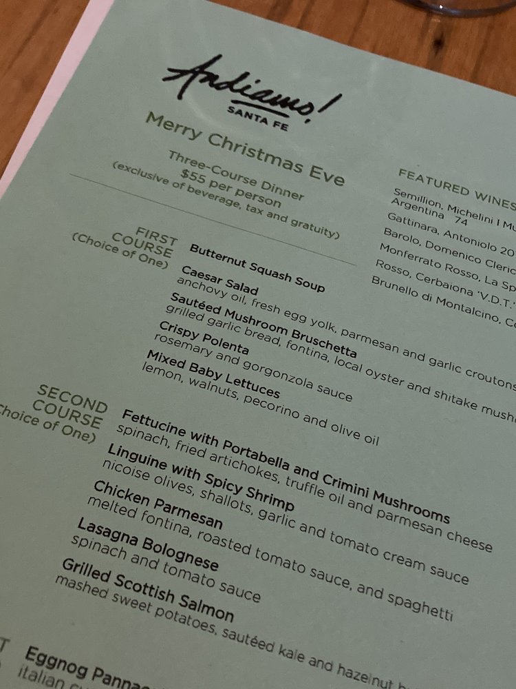 Discover Andiamo!, a charming Italian restaurant located in Santa Fe, NM. This intimate and classy establishment offers a variety of delicious dishes perfect for dinner with friends or a special date night. From classic Italian pastas like Linguine Arrabiata and Spaghetti Bolognese to mouthwatering entrees such as Chicken Parmesan and Fettuccine Alfredo, Andiamo! has something for everyone.